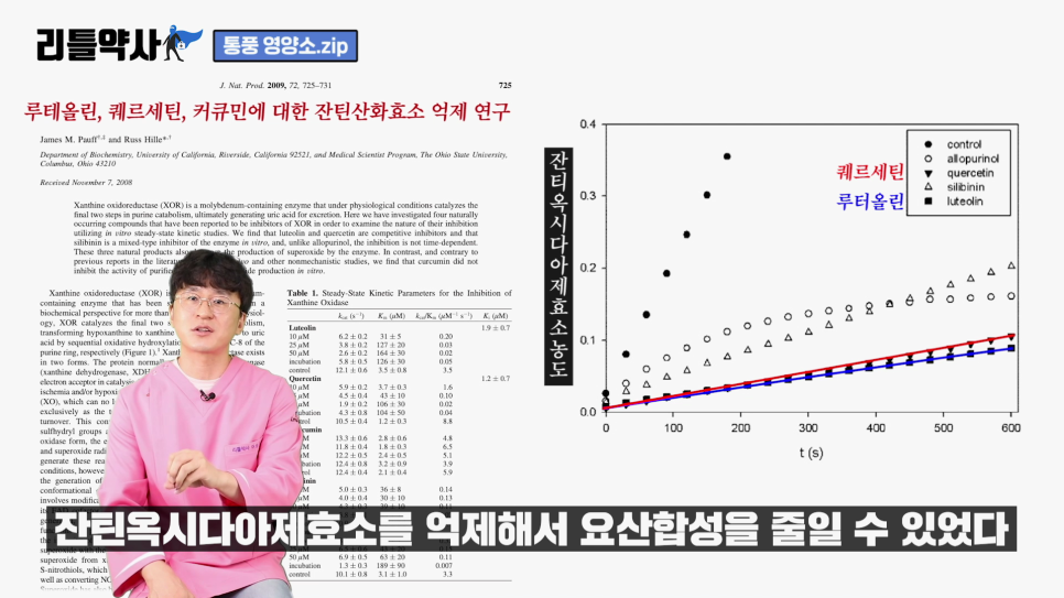 한 가지 연구라도요.루테오린과 쿠에르세틴은 잔틴옥시다아제 효소를 억제해 산합성을 줄일 수 있었다.라는 결과가 있었습니다.