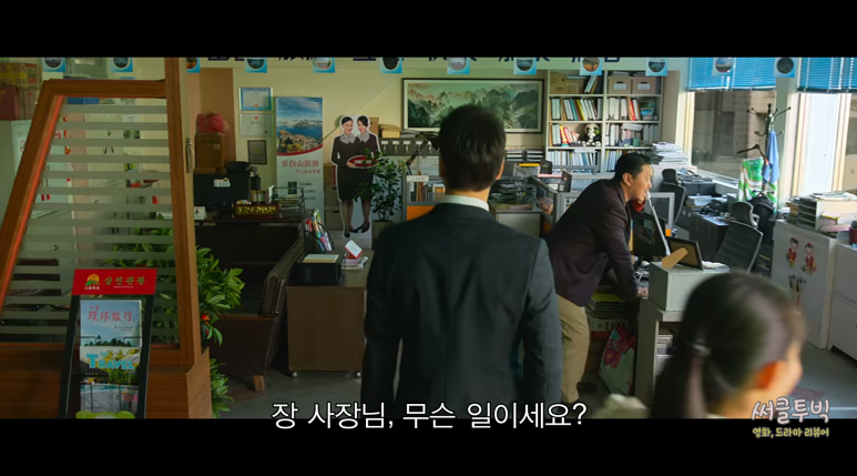사무실 4명 중 2명은 중국 여행사 지원이고, 안쪽 2명은 블랙팀 요원이자 막내인 정대와 선임 요원인 희원이다.