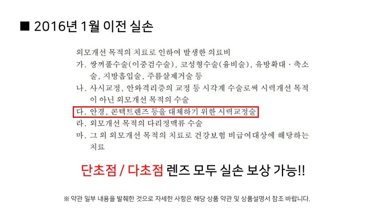 2016년 1월 기준으로 백내장 수술, 특히 다초점 렌즈 삽입술 지급 기준이 다릅니다.