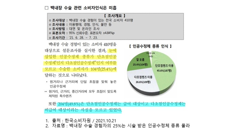 또 49.8%의 응답자는 단초점 렌즈는 급여 대상이고 다초점 렌즈는 비급여 대상이라는 사실을 몰랐다고 합니다.