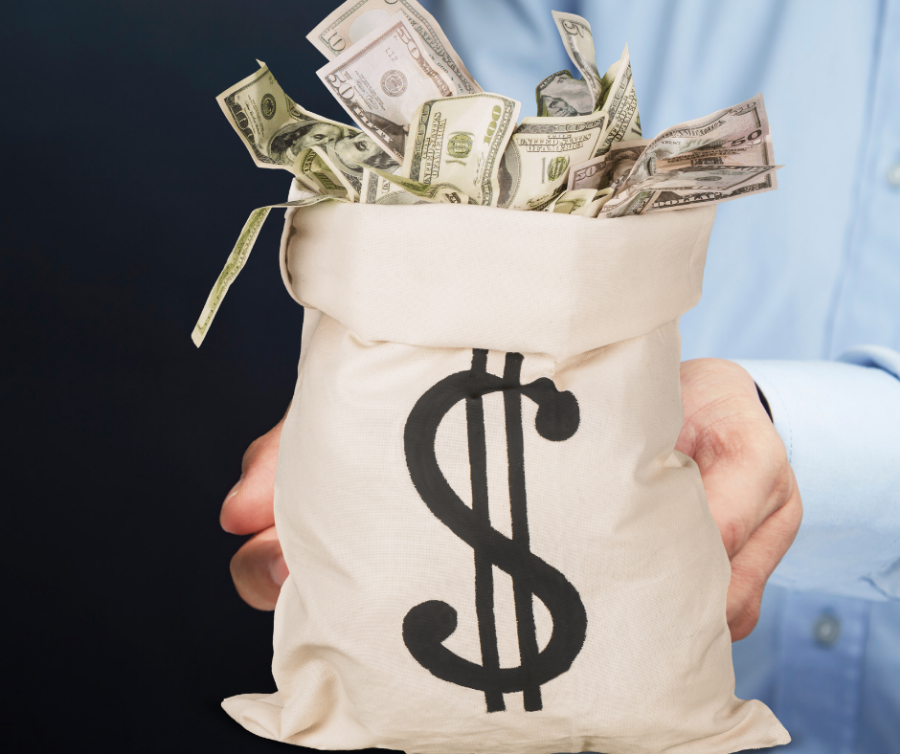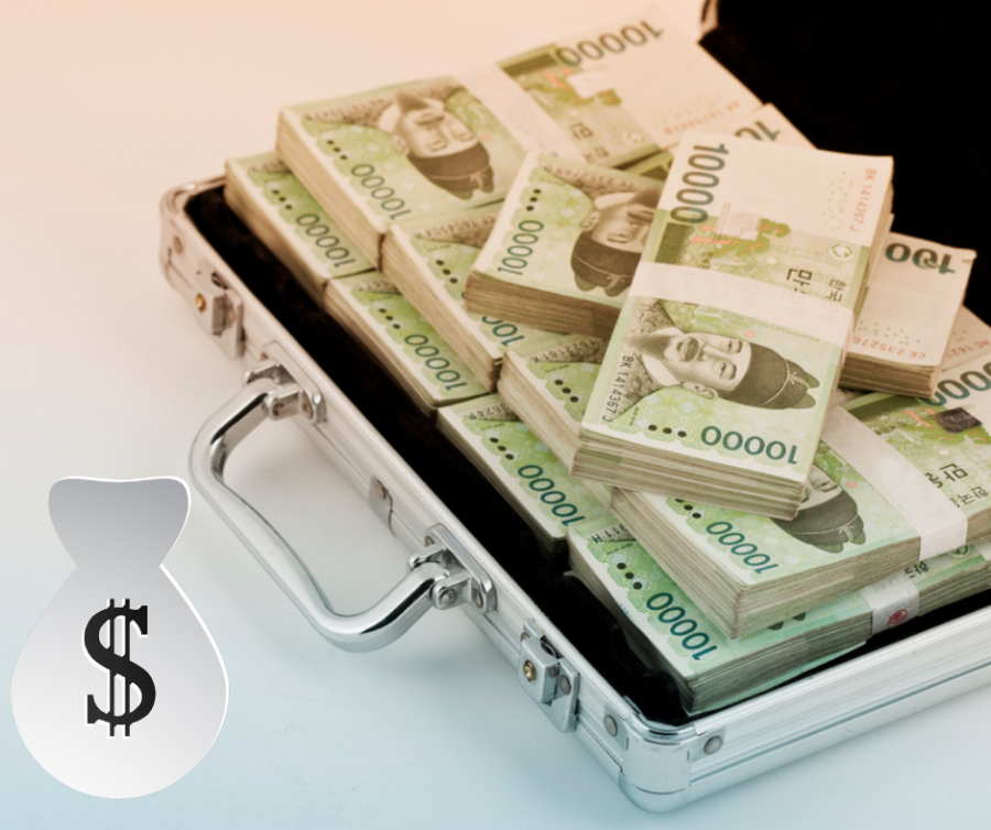 돈뭉치에 가득 찬 가방을 받는 꿈.