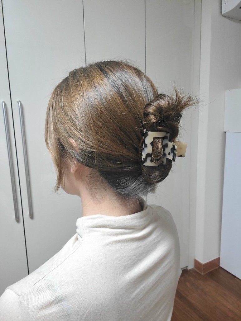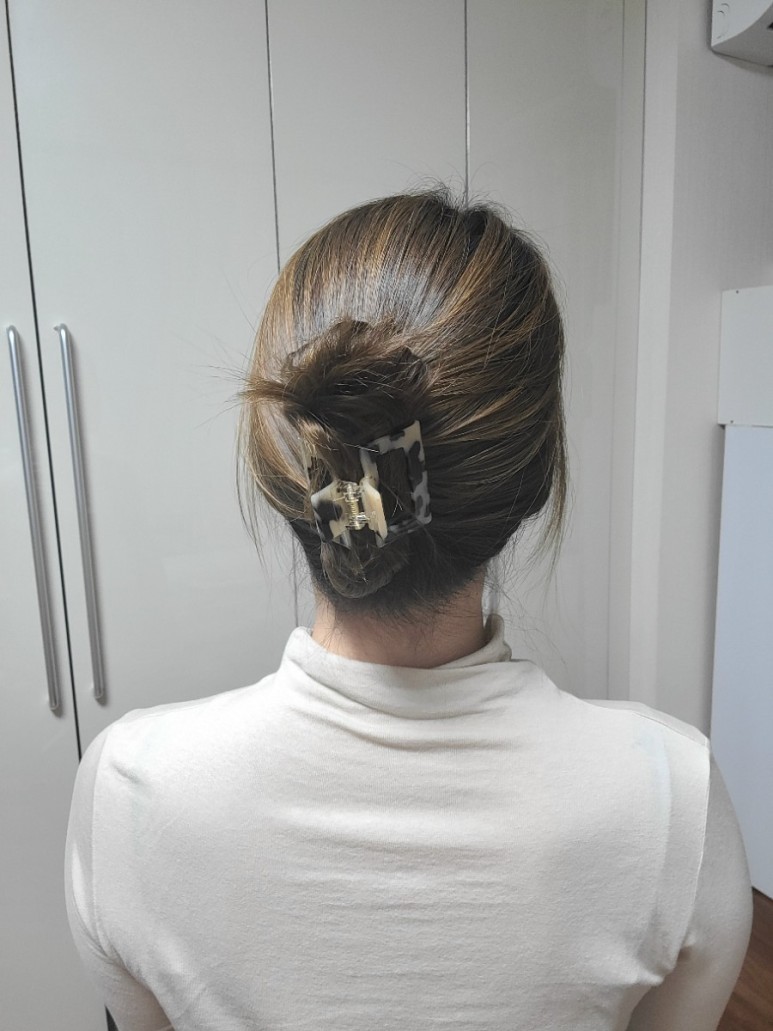 집게핀은 돌돌 말아서 대충 집어야 끝이에요 쉬운데 포인트가 돼서 잘 묶게 됐어요 고무줄로 묶었을 때는 머리가 많이 당겨져서 머리가 많이 빠지고 두피통증도 있었어요 집게핀은 우선 머리 잡아당기는 일이 없어서 집에서도 대충 감고 있어요 (웃음)