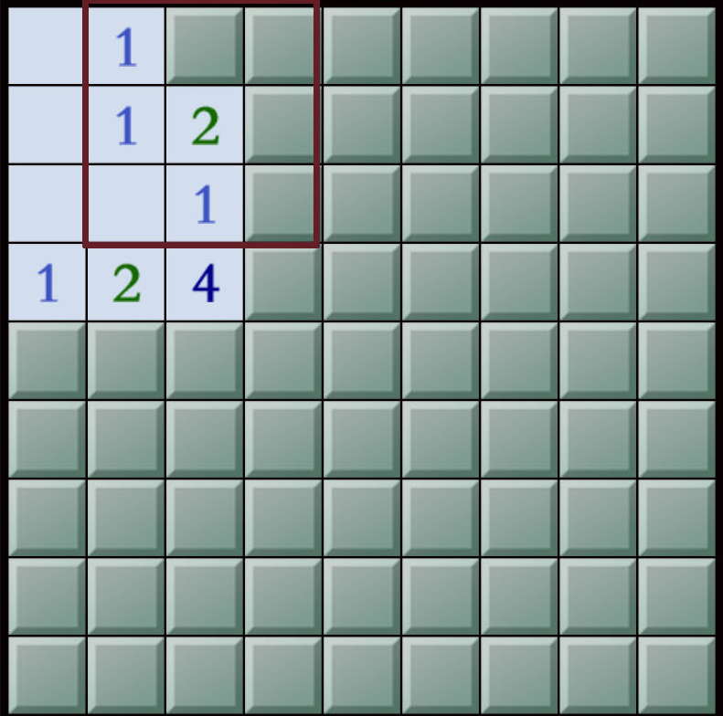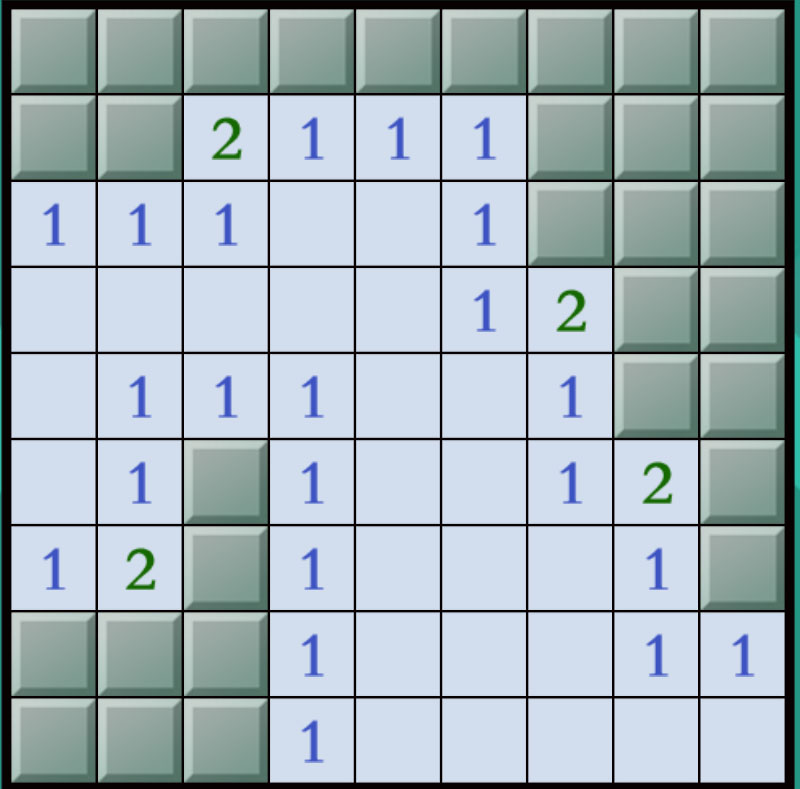 일단쉬운원리입니다.지뢰찾기는위에사진처럼아홉칸을보면서지뢰찾기라고생각하면돼요.숫자에 따라 주변에 지뢰가 있을 수 있습니다.1121이라고 적혀있죠? 즉, 1 주변에 지뢰가 하나 있을 가능성이 있다는 것이군요.2라고 써 있다고 하는데, 2 주변에 지뢰가 2개 있을 가능성이 있다는 것입니다. 아직도 무슨 말인지 이해가 안 가죠?저도 그랬어요 천천히 더 읽어주세요.
