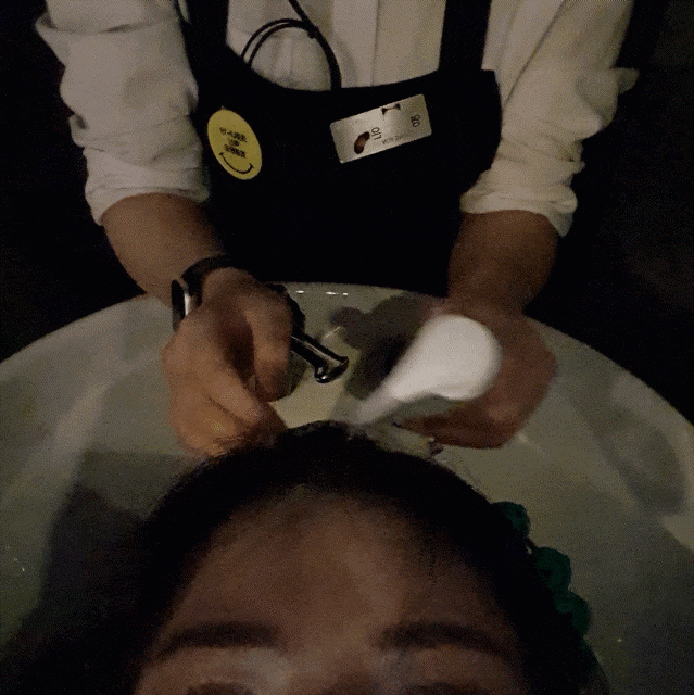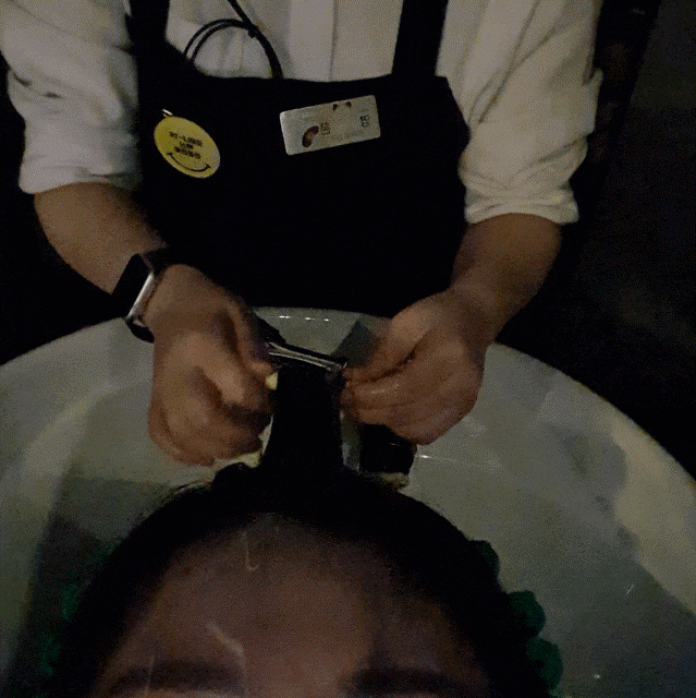 상담 후에 배우 리치프 실장이 뿌리펌을 하면서 머리가 많이 상했기 때문에 간단하게 수분단백질 케어도 해준다고 했어요!