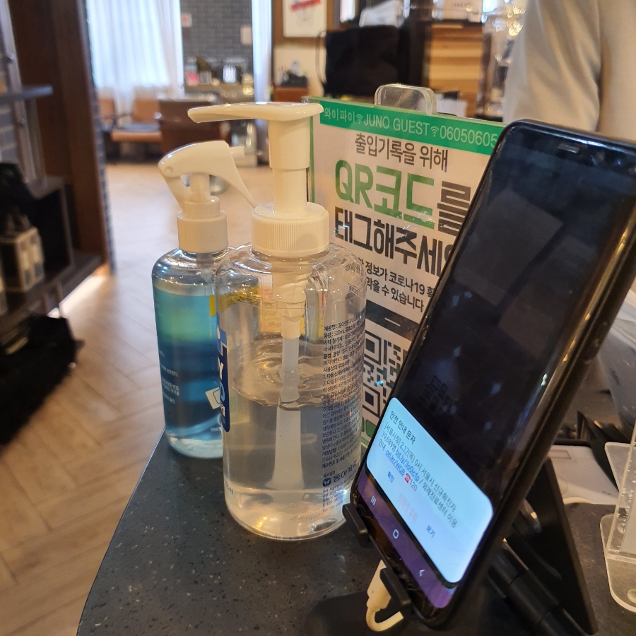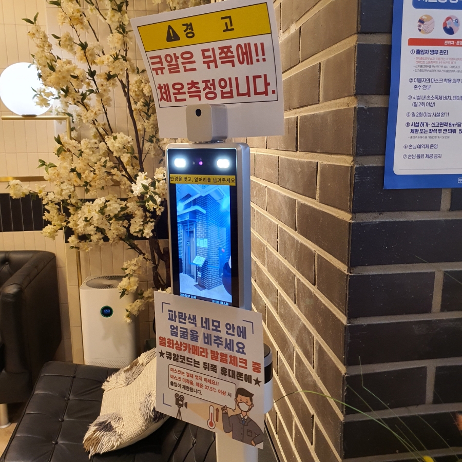 들어가면 QR체크, 열체크, 손소독 후 예약된 이름을 알려드립니다!
