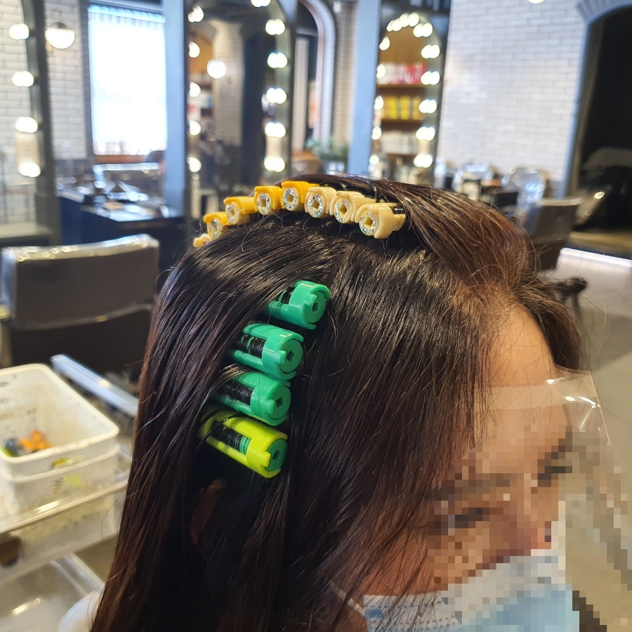 3. 로드로 말아서 파마제(?)를 뿌려줬어요.그동안 뿌리펌 한번도 안해봤는데 이런 로드는 너무 신기했어요!