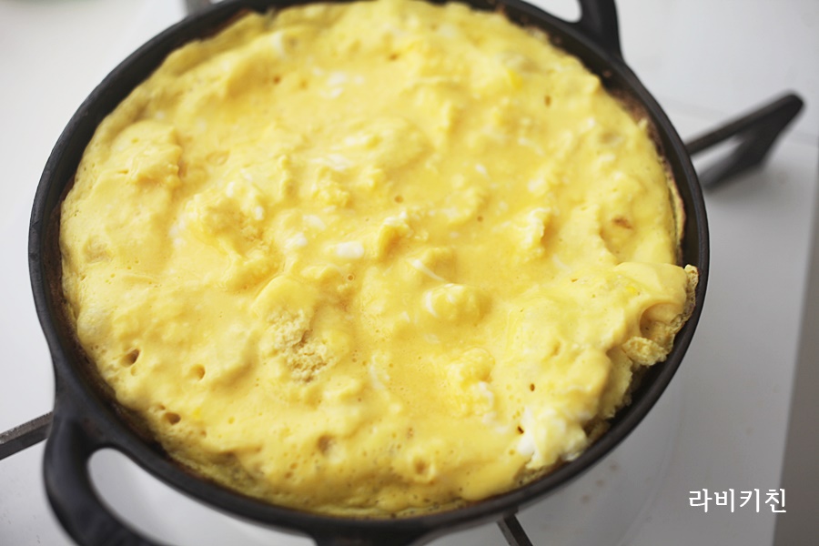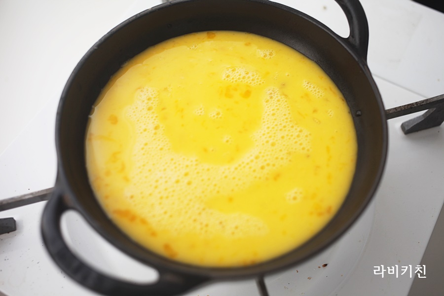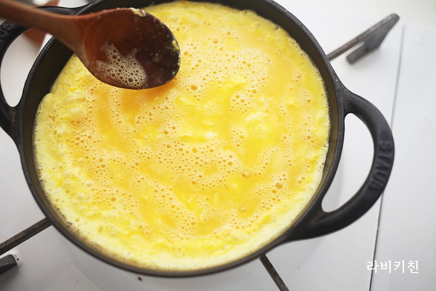 부드러운 계란이 올라오는데 숟가락으로 가끔 저어줍니다