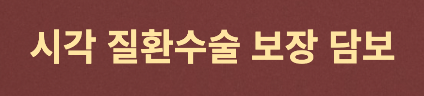 각각의 담보 평가는 개인의 평가이므로 참고하는 용도로만 생각해 주시면 감사하겠습니다.시각질환(백내장, 녹내장) 수술 보장 보장