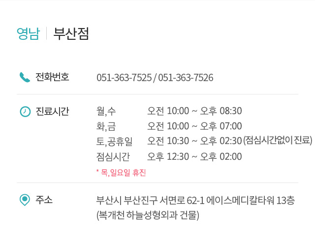 저희 병원에서는 한방치료를 통해 부산 축농증 고민을 나누고 있습니다. 낫지 않아 재발을 반복하기 쉬우므로 침 치료와 같은 치료 방법을 통해 코가 가진 본래의 기능을 살리는 것이 중요합니다. 원인, 증상, 증상의 정도에 따라 환자의 체질을 고려하여 맞춤형 처방을 통해 환자에게 도움이 되는 치료를 제안하고자 노력하고 있습니다. 부비강에 발생한 염증과 부종 개선에 도움이 되는 침 치료. 비강 내 분비물을 배출시키는 과정, 재발이 빈번하지 않도록 원인이 되는 문제의 요인을 환자와 공유하는 노력을 통해 분비물 제거에만 집중할 것이 아니라 막힌 자연공을 뚫어 비강과 부비강의 기능을 정상화시키는데 초점을 두고 노력합니다. 더 이상 방치는 금물입니다. 의료진과 상의하여 개선을 위한 노력을 지금부터라도 시작해 보세요!