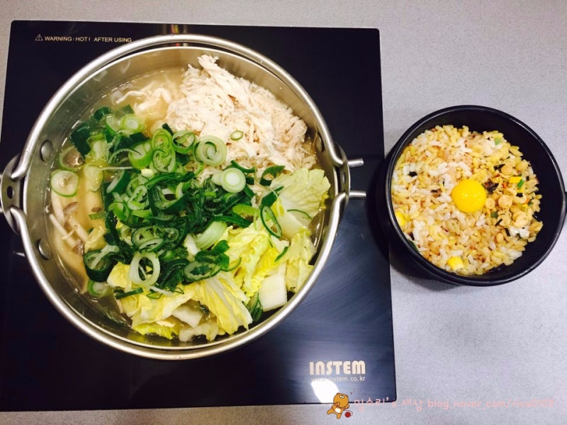 앞에 있는 국자와 여분의 그릇을 이용하여 적당량의 육수를 옮기고. 영양밥을 넣고 로우 단계에서 1분 정도 저은 뒤 전원을 끄고 먹으면 된다.