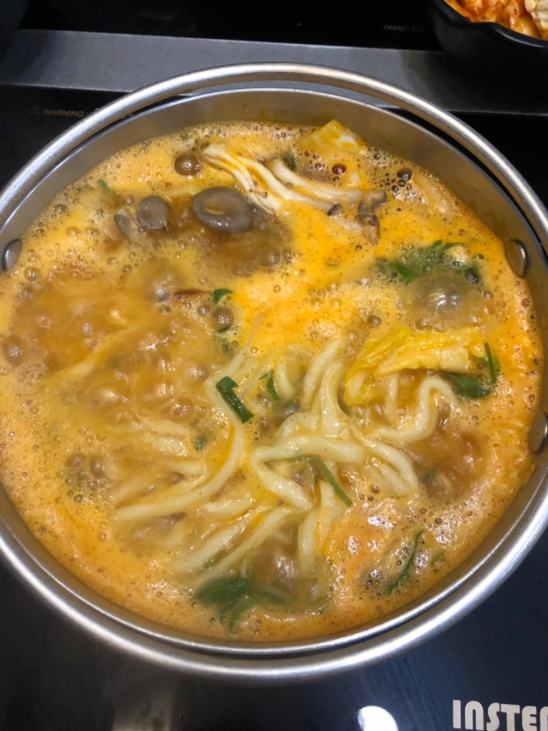 원래는 면이 끓으면 전원을 끄고 먹으라고 나왔는데 나는 계속 뜨거운 상태로 먹는 걸 좋아해서 Low로 설정해놓고 먹었다.