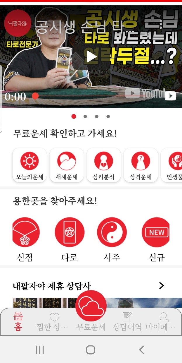 오늘의 운세부터 새해 운세, 심리 분석, 성격 운세 등 무료 운세도 볼 수 있으며, 매우 저렴한 가격에 비대면 전화로 신점, 타로, 사주 등 다양한 방법으로 사주 앱을 이용할 수 있다.