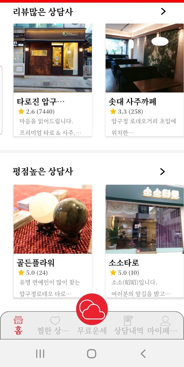 리뷰로 좋은 곳을 찾아주는 사주.신점.타로 매칭 플랫폼 내 여덟글자 가게입니다. 12종류의 무료 운세 서비스가 무료!www.myluck.or.kr