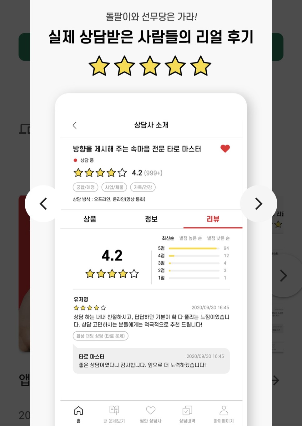 오늘 운세도 무료로 보고 무엇보다 이용했던 사람들이 솔직하게 평가해 놓은 후기도 볼 수 있고 좋은 서비스를 받을 수 있을 것 같다이용자 평가는 중요하니까 🙂