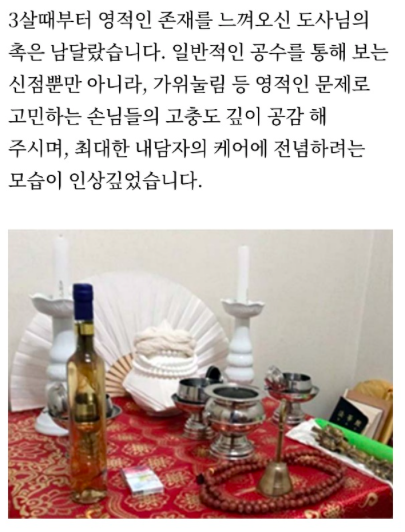 나는 텐진 도사 선생? 에 신점을 보기로 한 미아시 고바 합회 소속이라고 하는데, 신점 페이지 맨 처음에 원톱으로 나오니까 신뢰가 가서 선택하게 되었다.