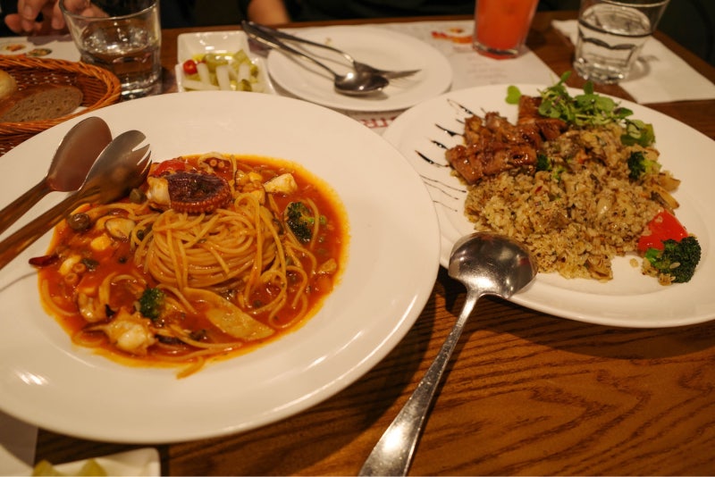 비스트로미 시그니처 메뉴인 것 같아 주문한 낙지 토마토 파스타 서울역이 땅값이 비싸기 때문일 수도 있지만 음식값이 비싼 편입니다.위에 문어발 말고도 소스에 문어가 있어서 맛은 무난했어요.(웃음)