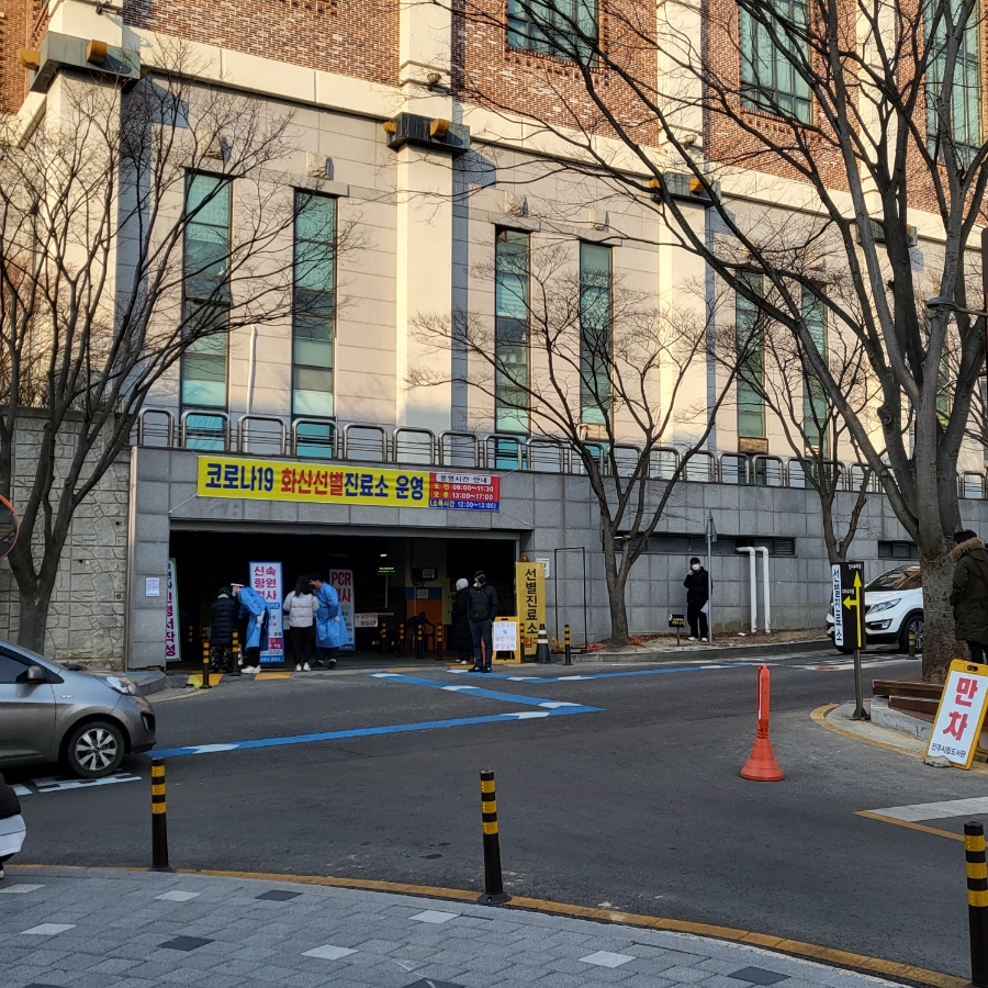 저 주차장 안쪽에 늘어선 곳이 PCR 검사 대열이었는데 어제(10일 목요일) 오후 4시에 도착했더니 기다리는 사람이 없어 바로 들어갔어요.