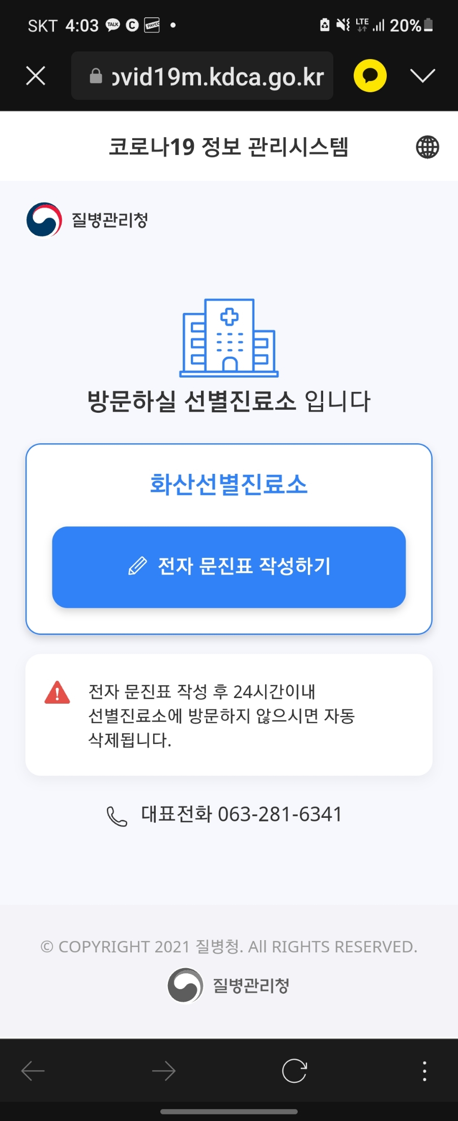문진표 화면입니다.이름과 주민등록번호, 증상 유무 등을 체크했습니다.누르라는 것만 누르시면 됩니다.