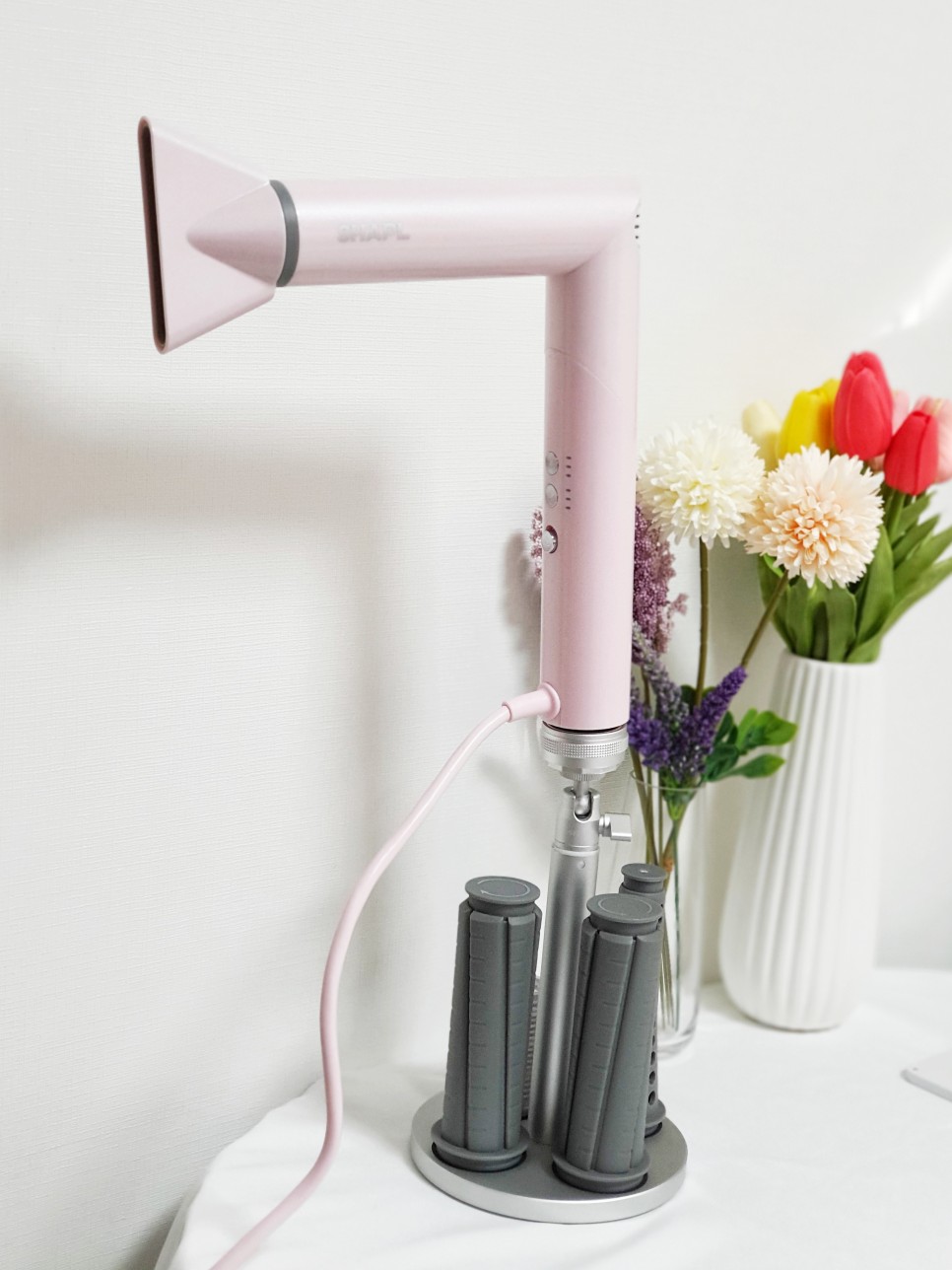 그래서 셔플 헤어스타일러를 스탠드에 장착시켜 봤습니다 (웃음) 만족합니다한 가지 아쉬운 점은, 저 스타일링 노즐을 홈에 끼우는 데 힘을 주지 않으면 안 된다는 점입니다.그냥 막대에 끼우는 형식? 이게 더 편할 것 같은데?