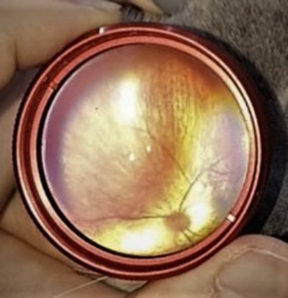 치료 후 망막 출혈괴가 흡수되어 망막 혈관이 정상적으로 관찰되는 모습을 보입니다.