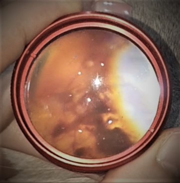 치료전망망막 위의 사진은 안과망막렌즈에서 보이는 환자의 망막 모습입니다.