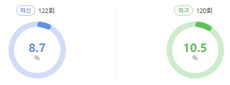 시청률은 최근 122회 8.7%를 기록했고, 역대 최고 시청률은 120회 10.5%를 기록했습니다. 두 번째 앞에서 최고 시청률을 달성한 것을 보면 앞으로도 더 높은 시청률을 달성할 수 있을 것으로 기대해 봅니다.