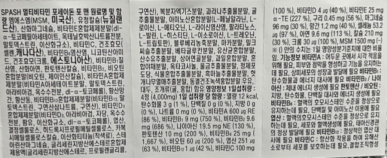 SPASH 멀티 비타민 남성 영양제에는 50대 중년 남성에게 필요한 모든 영양을 듬뿍 넣었습니다.다른 종합 비타민과의 차이점은 MSM 원료가 포함되어 있다는 점