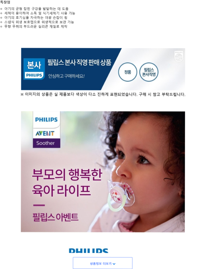 처음에 ‘뭐가 좋을지 몰라서 준비해봤다’는 생각으로 두 브랜드의 제품을 준비했습니다. NEW 필립스 아벤트 울트라 소프트 노리개 젖꼭지 2P와 모유 실리콘이 2종류를 처음 구입했습니다. 젖꼭지도 자주 씻는 아이가 있는 반면 싫어하는 아기가 있고 선호하는 타입도 다르기 때문에 만약을 위해 2종류를 사용해 보았습니다. 아벤트는 필립스의 유아용품 전문 브랜드로 젖병 등 다른 제품도 있지만, 젖꼭지가 국민쪽이라고 불릴 정도로 인기가 많은 제품입니다. 그래서 저희도 구입하기도 했어요.
