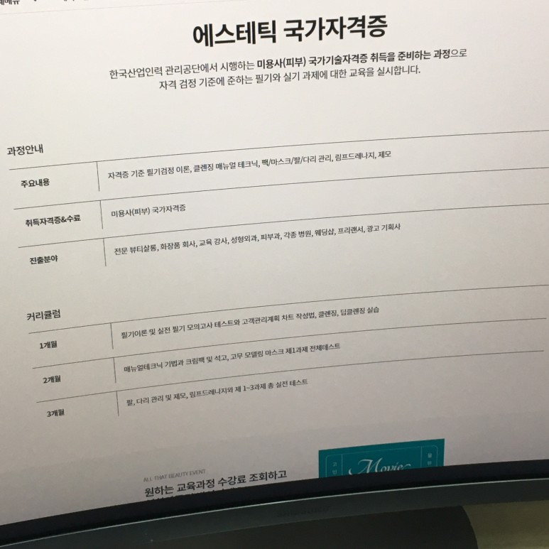 얼굴뿐 아니라 전신관리에서 시험범위가 넓다는 점이 예상 밖의 복병이라고 생각했습니다. 그래서 학원을 다녀야겠다고 생각했습니다.
