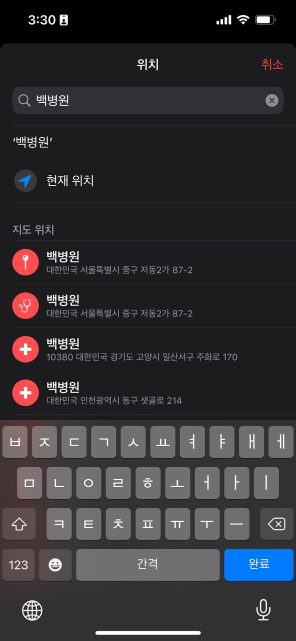 이때! 치과 위치 넣어주세요위치를 눌러 병원 이름을 입력하시면 자동으로 검색하여 추천 목록이 표시됩니다.주소를 직접 입력해도 됩니다.