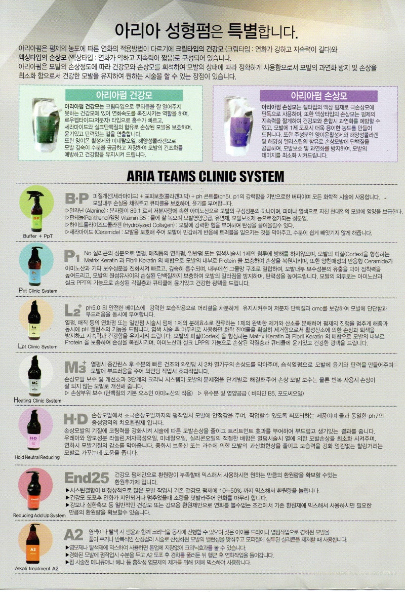 아리아약제, 서포터 전제품 아리아는 펌약제, 서포터약제, 매직기, 아이롱기기가 있는 회사로 아리아약제는 디지털펌시 세분화하여 더욱 정교한 펌을 할 수 있도록 약제가 나오는 브랜드입니다~