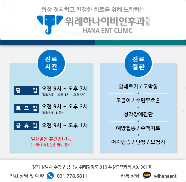 편도결석의 재발은 그 복합적인 문제로 인해 현대인에게 심각한 신체적, 심리적, 사회적 문제를 야기하는 문제입니다. 따라서 적절한 내원과 치료를 통해 질환을 해결하지 않으면 안 되는 것입니다만. 위레하나이비인후과는 이러한 환자의 편도결석 재발에 대한 원인과 증상을 밝혀내어 환자에게 쾌적한 일상을 제공할 수 있도록 최선을 다하고 있는 만큼 믿고 맡겨 편리한 일상을 되찾아 가고자 합니다. 편도 결석 재발로 고민이 되신다면 위례 하나 이비인후과를 내원하세요.