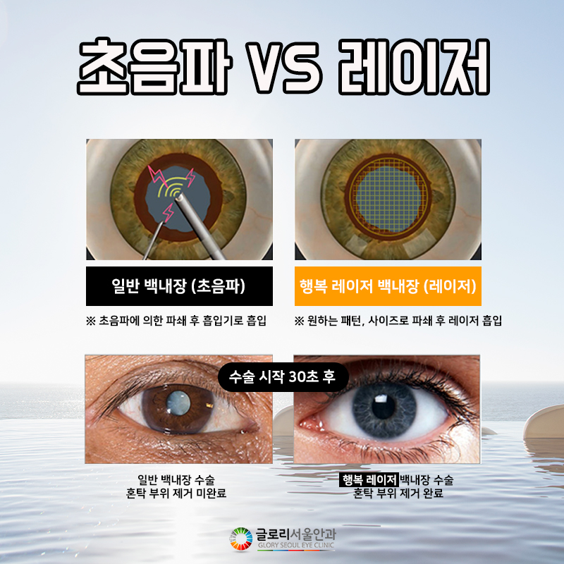 최근 스마트폰이나 컴퓨터 등 전자기기 사용시간의 증가로 젊은 나이에도 노안, 백내장 등 노인성 안질환을 앓는 사람들이 늘고 있는 추세였습니다. 갑자기 눈이 침침해지거나 시야가 흐릿하게 보이거나 사물이 겹쳐 보이거나 하는 증상이 나타나면 나이에 관계없이 안과를 내원하여 정밀 검사를 받는 것이 좋습니다.백내장의 경우 과거에는 실명질환 1순위로 꼽혔으나 최근에는 의료기술의 발전으로 비교적 안정적이고 신속한 치료가 가능해졌으며 정기적인 검사를 통해 조기 발견과 개선도 용이해졌으므로 눈 건강에 보다 적극적인 관심을 가지고 관리하는 것이 중요합니다.오늘은 한국에서 가장 일반적으로 볼 수 있는 백내장에 대해 알아보려고 합니다. 원인과 증상은 무엇이며 수술은 어떻게 이루어지는지, 백내장 수술 시간과 회복 기간은 얼마나 걸리는지 구체적으로 살펴보겠습니다.