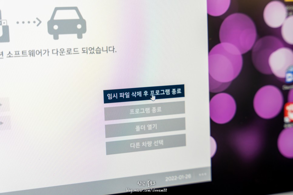 이 과정이 모두 진행되면 다운로드 완료 안내와 오른쪽 하단에 파란색으로 임시 파일 삭제 후 프로그램 종료라는 항목이 나오는데 위의 x를 눌러 닫지 마시고 임시 파일 삭제를 눌러주세요.