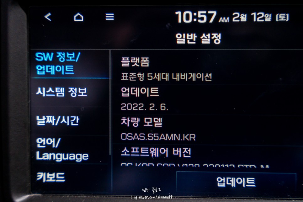 ‘일반’을 클릭하면 sw정보/업데이트라는 항목이 선택되어 있습니다. 이러한 메뉴가 없으면 sw정보라고 적혀있는 항목을 찾아서 선택하면 ‘플랫폼’의 ‘차량 모델’에 적혀있는 항목이 표시됩니다.