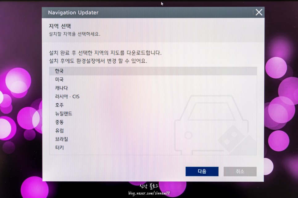 설치할 지역을 선택하라는 옵션이 있습니다. 외국에서 신청하시는 분은 해당 국가를 선택하시면 되고, 한국에 거주하시는 분은 기본적으로 한국에 체크가 있으므로 이대로 <다음>을 누르시면 됩니다.