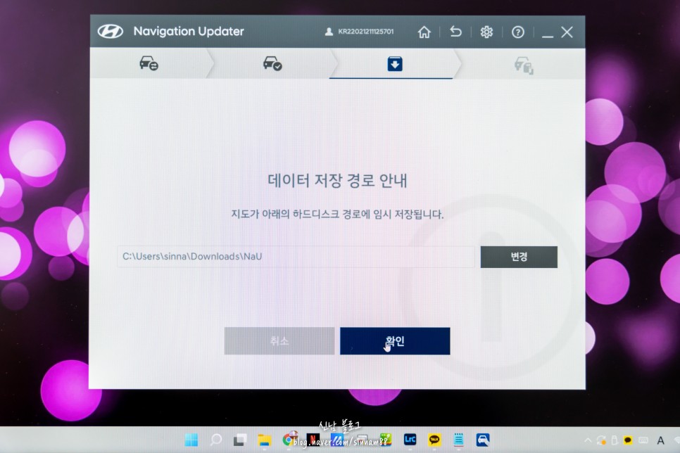 <데이터 저장 경로 안내> 가 표시됩니다. 하드 디스크에 저장하는 장소를 알려주는데 변경하지 말고 그대로 OK를 선택하세요.