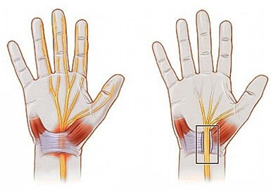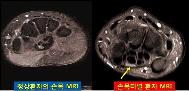 손목을 너무 많이 사용하면 손목 횡수근의 인대가 두꺼워지는데, 문제는 횡수근의 인대가 두꺼워지고 수근관을 통과하는 정중신경이 눌려 통증과 저림이 생깁니다.