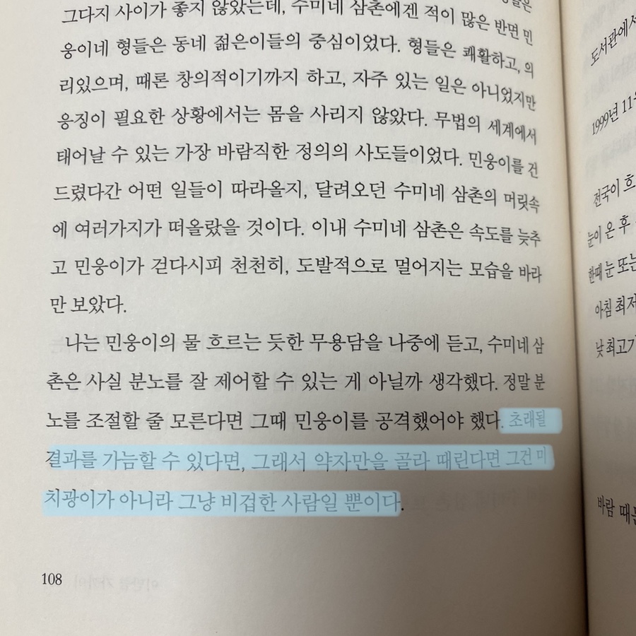 「초대받을 결과를 예상할 수 있다면, 그래서 약자만 골라서 때렸다면, 그것은 미치광이 아니고 비겁한 사람에 지나지 않는다.”