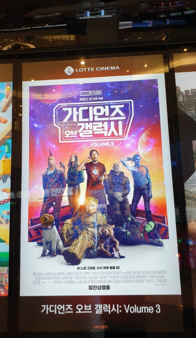 가디언즈 오브 갤럭시: 볼륨3 감독 제임스 건 출연 크리스 플랫폼, 조 살다나, 데이브 바티스타, 빈 디젤, 브래들리 쿠퍼, 캐런 길론, 폼 클레멘티에프, 윌 폴터, 엘리자베스 데이비드 숀의 건 공개 2023.05.03.