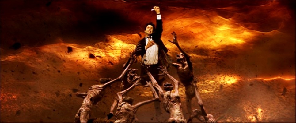 그때 갑자기 자동차 문이 닫히면서 주변의 모든 빛이 사라지고 날개소리가 들리기 시작하는데 콘스탄틴은 들고 있던 천에 불을 붙여 발산되는 빛으로 그녀 주변에 모여든 악마들을 물리치고 안젤라는 유황 냄새에 기침을 합니다.