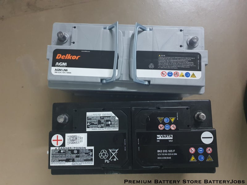 새로 교체한 배터리는 이전 정품 배터리 스펙보다 용량 업그레이드된 agm105 암페어 모델로 교체했는데 저희가 권장하지 않아도 차주가 용량을 agm105로 지정하곤 합니다. 용량 업그레이드는 독일차 중 아우디만의 장점이기도 합니다.