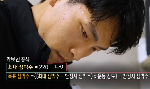 제가 평소 목표 심박수를 150160으로 설정해 연습합니다. 이것은 제 최대 심박수의 60에서 70%로, 섭취한 운동 강도입니다.선수들에겐 그날의 컨디션이 매우 민감한 부분이지만 개인의 상태를 훈련 전 안정시 심박수 측정으로 예측할 수 있기 때문에 심박수를 항상 측정하고 파악해야 한다고 생각합니다.