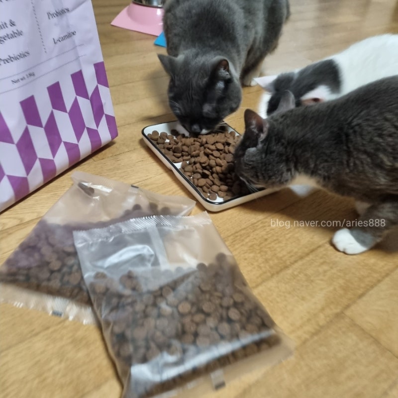 딱 봐도 사료 알갱이 사이즈는 조금 커 보여요.