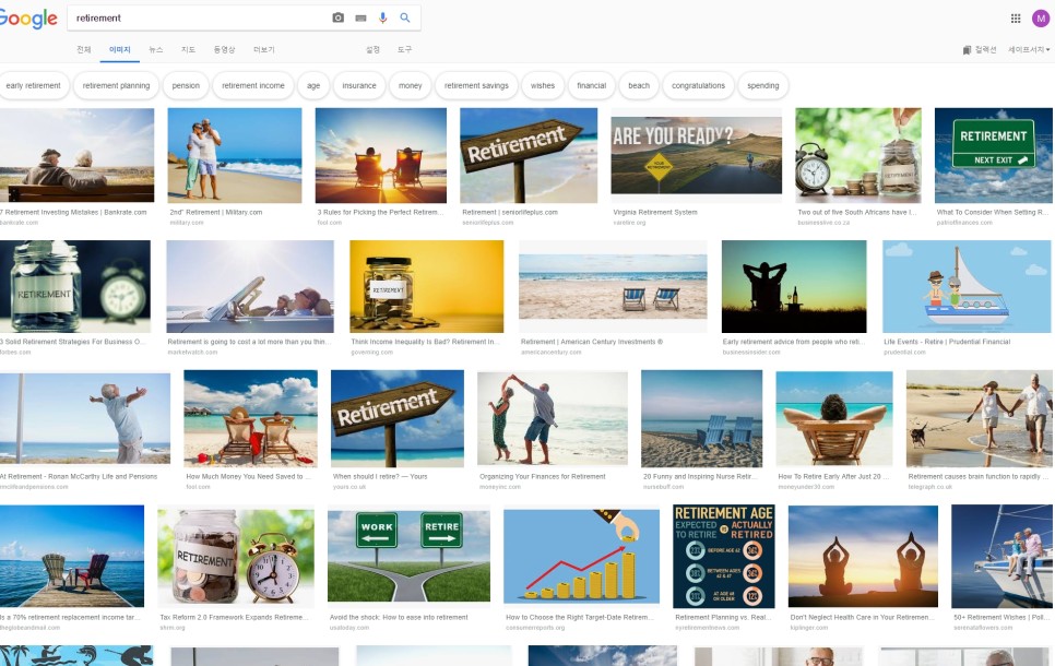 구글에서 retirement 검색하면 이런 이미지다. 서양의 은퇴와 한국의 은퇴는 큰 차이가 있는 것 같다.은퇴라고 하면, 한가로운 노후를 상상하고 있던 시대가 한때 있었다. 평생 일한 대가로 퇴직금이 있고, 자기 명의의 집도 있고, 아이도 취직해서 자신을 생각하면 불안하지 않다. 하지만 지금은 언제 해고될지 몰라 집은 모두 은행에 담보가 잡혀 있고 아이도 비정규직으로 불안한 생계를 유지하고 있다. 과거에는 너무 바쁘게 일했지만 은퇴 후에는 너무 무의미한 삶에 적응하는 데 어려움을 호소하는 사람이 많았다. 지금은 게다가 노후대책에 대한 불안감이 커진다. 평균수명이 늘어나면서 과연 지금 가진 돈으로 몇 살까지 버틸 수 있을지는 누구도 장담할 수 없다.