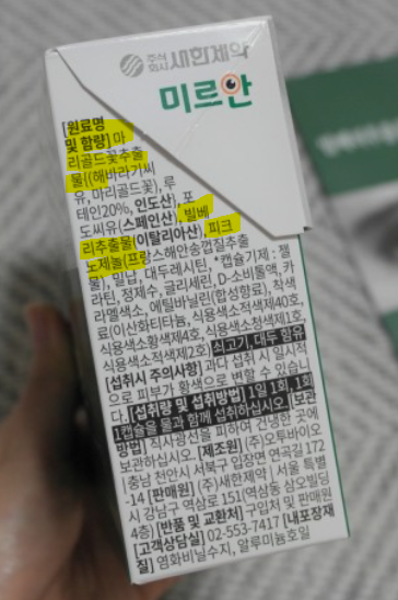 건강기능식품을 먹는 목적은 주원료의 효능을 기대하기 때문이다.”주원료”는 허가된 효과를 나타내기 위해 어느 정도 이상의 함량을 넣어야 한다는 함량기준이 있으며 제조사는 제품이 만들어지면 함량기준에 제품이 합치되는지를 시험하여 평가한다. 만약 시험 결과의 함량 기준을 충족하지 못하면 제품을 유통할 수 없다. (예. “주원료 루테인 20mg함유, 황달 색소밀도를 유지하여 눈 건강에 도움을 준다” – 아, 루테인이 20mg 들어있으므로 이 약을 먹으면 눈 건강에 도움이 되는구나! 하고 사서 먹는 것이 ㅋㅋㅋ) 반면에 “부원료”, 즉 첨가제는 효과를 보증하는 함량기준이 없으며 따라서 생산된 완제품을 가지고 함량시험으로 함량시험도 없다. 또한 함량 표시도 되어 있지 않아 얼마나 들어 있는지 알 수 없다. “부원료 빌베리 추출물, 피크노제놀 함유” – 뭔가 좋은 게 좀 들어간 것 같아 – 근데 얼마 들어갔는지도 모르잖아 뭐 이런 걸로 괜찮다고 홍보하고 난리났어. 무엇이 중요한가)눈의 영양제 루테인, 빌베리 엑기스를 어떻게 먹을까.루테인 노화로 인한 시세포 손상을 예방하기 위해 루테인을 먹을 경우 하루 1020mg의 건강식품을 선택해 먹으면 된다. 노화로 인한 시세포 손상을 막기 위해 가족력 등 특별한 이유가 없다면 40대부터 복용할 것을 권한다. (나도 아직 못 먹었다.) 또 어떤 제품이 좋은지 물으면 국내 제품이라면 품질에 큰 차이가 없다고 답한다. 한국의 건강기능식품은 제조회사 여러 곳이 대부분 oem 방식으로 생산하기 때문에 판매회사만 다를 뿐 같은 제품이 매우 많다. 단, 해외 제품은 생산처나 수출국에 따라 품질관리 기준이 다르기 때문에 퀄리티를 판단하기 어려우니, 가급적 한국 식약처 기준에 맞게 생산과 품질 관리를 하는 국산 제품을 드시기 바랍니다. 증상에 따라 아스타크산틴(눈이 침침하고 피로가 심한 경우), 오메가3(눈이 뻑뻑하고 건조한 경우)가 함께 들어간 제품을 선택할 수 있다.