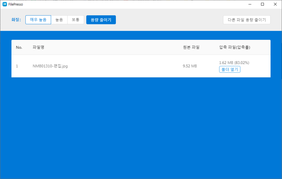 어머! 9.52메가에서 1.61메가로 줄었어요.