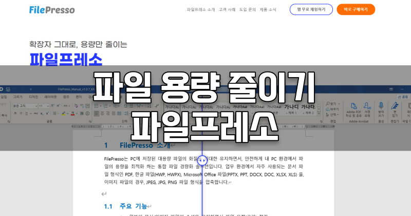 대용량 PDF 엑셀 사진 한글 파일 용량 줄이기 파일 프레소로 해결