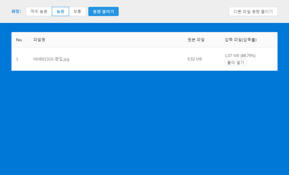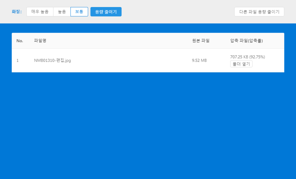 높이랑 보통 화질로도 진행을 해봤습니다 보통의 경우는 1메가 이하로 줄어드네요 아주 좋습니다 😀