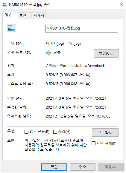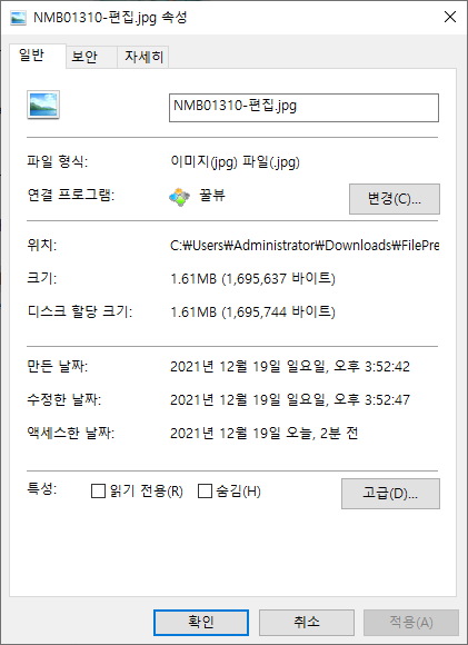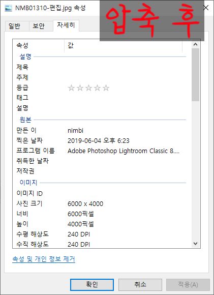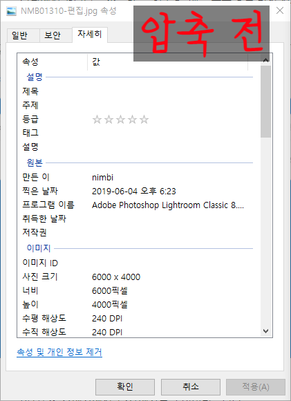 픽셀이나 DPI는 그대로입니다 다만, 용량이 엄청난 비율로 줄어들어버린 것 같군요.
